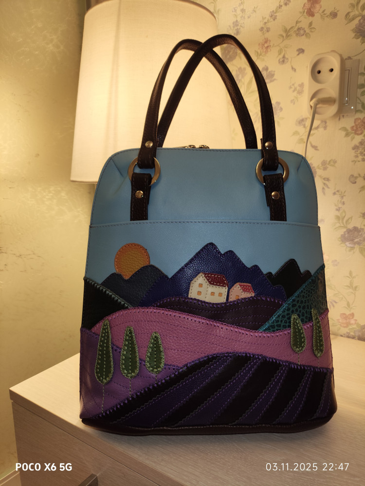 Сумка просто чудо: 1. Очень функциональная; 2. Это настоящее произведение искусства; 3. Когда я с ней, постоянно ловлю восхищённые взгляды! Спасибо!