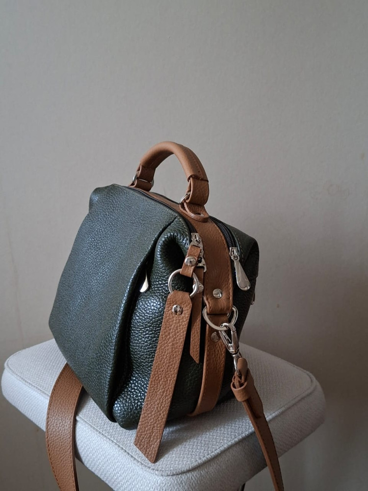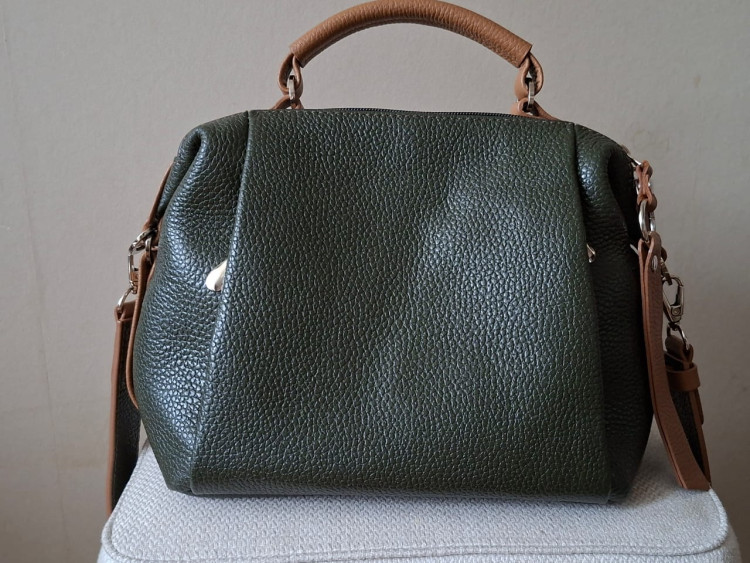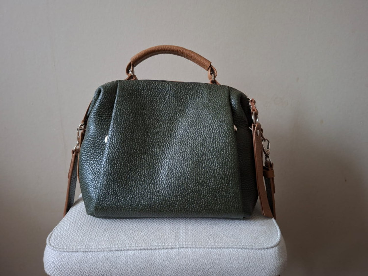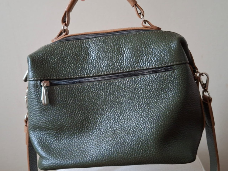 Сумка добротная и практичная. Кожа мягкая и приятная на ощупь. Очень красивое сочетание цветов: темно-зеленый (хаки) и бежевый. Довольно вместительная несмотря на небольшой размер.
