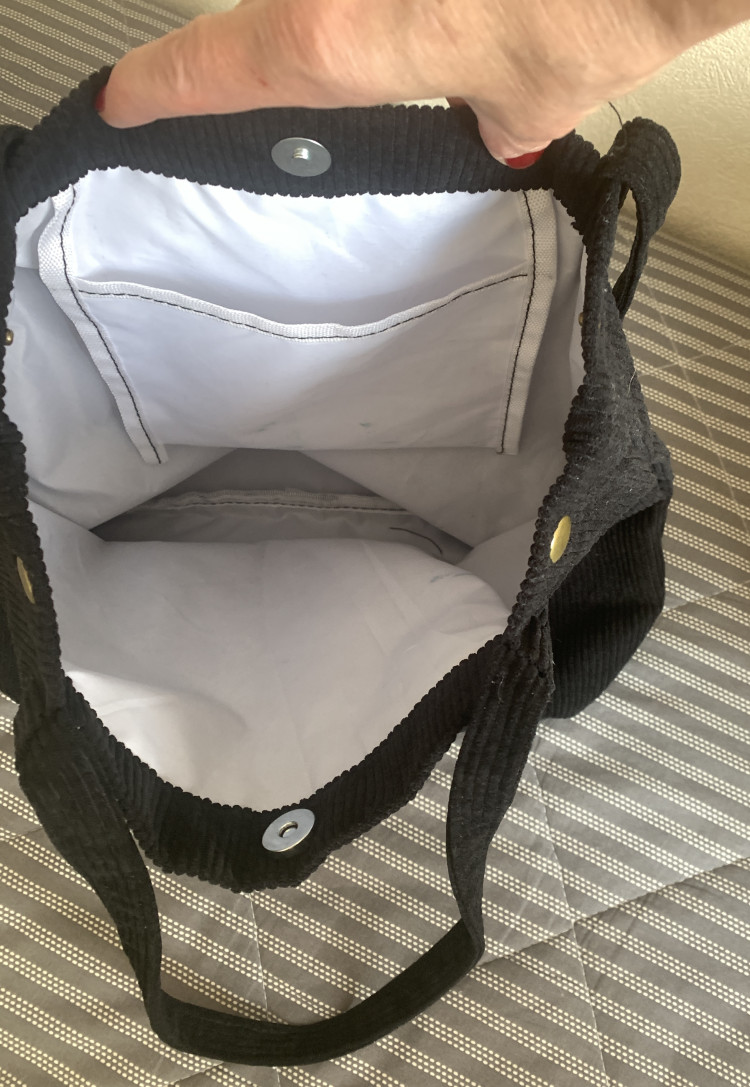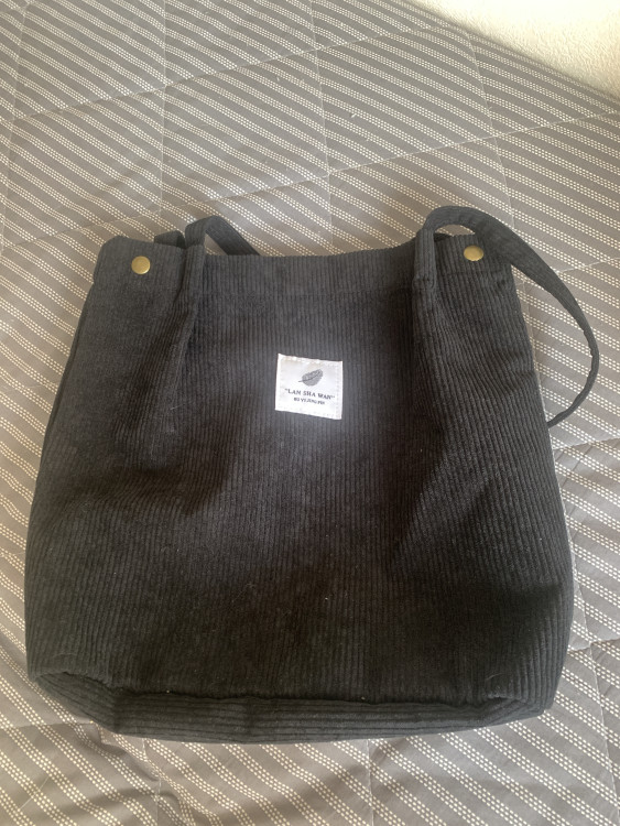 Сумка шопер, выбрала черную, материал вельвет, удобный размер, не огромная. Внутри открытый кармашек и в середине кнопка застегнуть. Понравилась