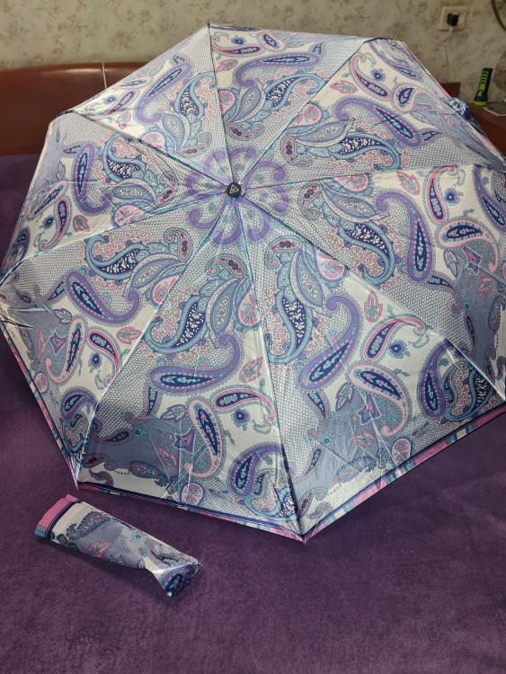 Просто замечательный зонт! Довольно легкий, с большим атласным куполом очень красивой расцветки. Полный автомат с системой "антиветер". Кнопка нажимается без усилий.