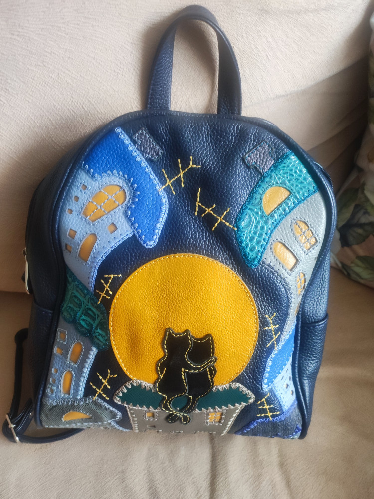 Оригинальные сумки и рюкзаки с яркими аппликациями - настоящие произведения искусства, в создании которых участвовали талантливые художники культурной столицы. Каждая модель является самостоятельной картиной, выполненной как сюжетная объёмная аппликация. При их создании профессионально учитывается цветовая гамма, игра теней и объёмность узора.