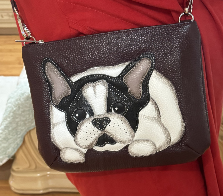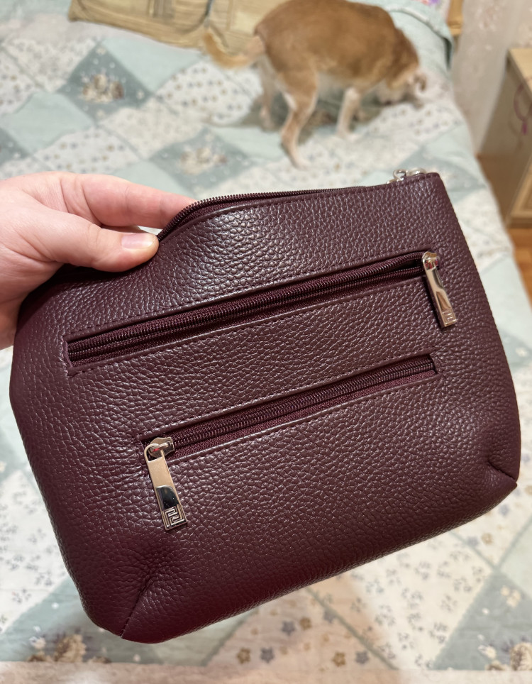 Я увидела эту сумочку, проезжая мимо. И поняла- хочу! Она просто прекрасна, веселая ,жизнерадостная. Хорошее качество кожи, цвет бордо матовый, не яркий. Много карманов. Три внутри и два снаружи. Покупала для прогулок с собакой такой породы, и выставок. Просто счастлива, так нравится.